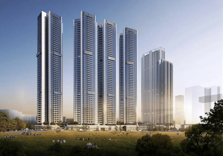 01-02地块占地约1.23万平方米,总建筑面积约15.08万平方米,计容建筑面积约10.85万平方米,容积率为8.31,绿化率为40.01%。该地块包含2栋住宅楼,分别为41层和59层,以及1栋30层的办公楼和1所9班制幼儿园。总规划1194户,住宅楼采用3梯4户设计,其中包括972套保障房。