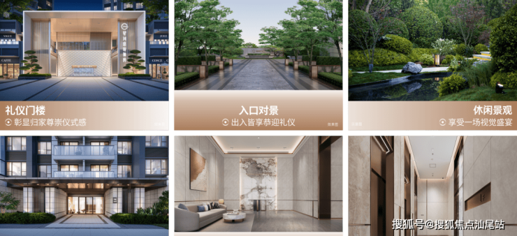 精琢六重归家礼序,奢阔礼仪门楼——入口对景——休闲景观——入户花园——奢阔大堂——品质公区,层层铺垫归家仪式感,让业主感受尊崇、互动、沉浸、归属的全新归家体验。