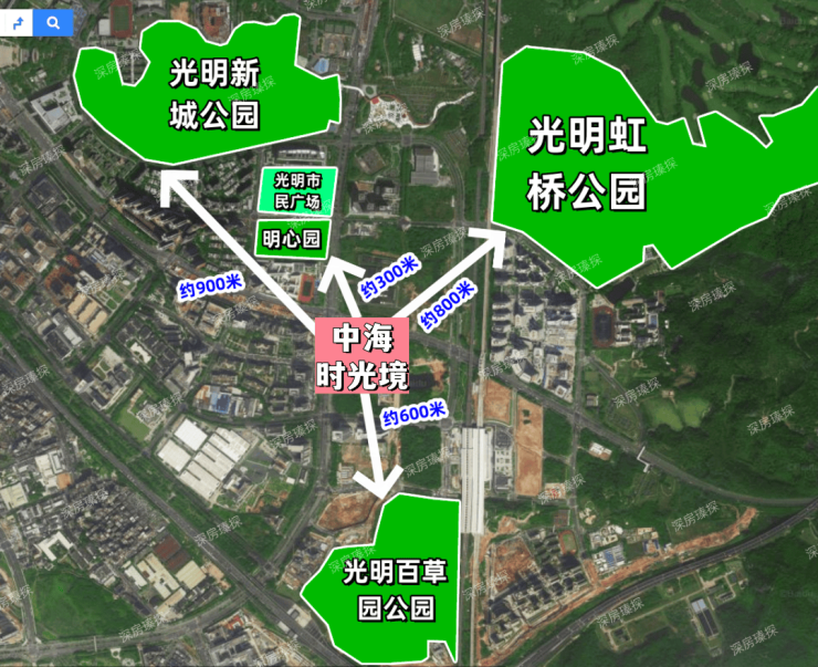 公园配套:中海时光境约300米范围内有明心园,光明市民广场,约1公里范围内有光明百草园公园,光明新城公园,光明虹桥公园,也是光明著名网红打卡地,闲暇时光陪伴家人散步,跑步,赏花,观景,皆是不错的选择。
