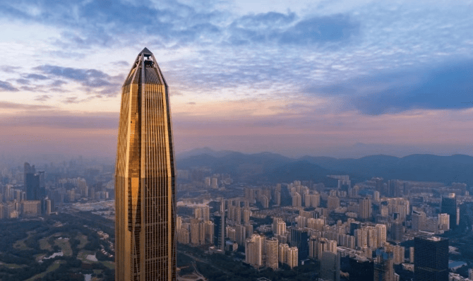 #深圳平安金融中心,坐落于深圳市的行政、金融、文化、商贸和国际交往中心——福田区CBD核心,项目总占地面积约3万㎡,总建筑面积约66万㎡,其中北塔高度约599米,是全球第四高楼、华南第一高楼,与写字楼B、C座、PAFC MALL、Free Sky云际观光层以及深圳柏悦酒店等共同构成了大湾区首屈一指的集写字楼、商业、观光、酒店等业态于一身的旗舰级金融服务产业综合体。