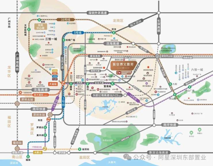 16号线坪山站 :坪山站升级“坪山综合交通枢纽”,16号线、高铁、深大城际(宝安机场——坪山,在建)三轨交汇;