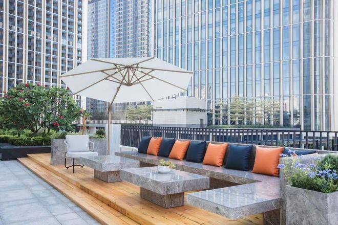 126米超宽楼间距,二层生态连廊,“花园式”办公环境+“可呼吸的幕墙”,赋能健康办公。