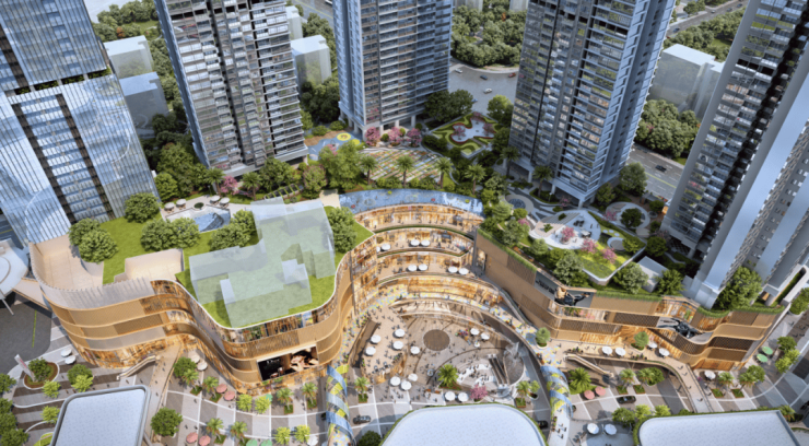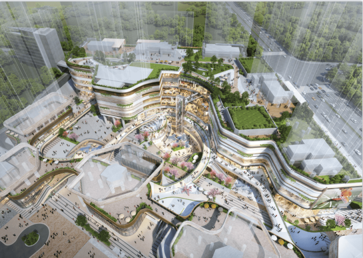 比如商业和中央广场空间的组合,就传承罗湖“一半山水一半城”的城市空间理念,以花卉植物为设计元素,融汇东西方园林艺术,打造城市原创的潮玩美学——“BLOOMINGVIL-LAGE”景观。
