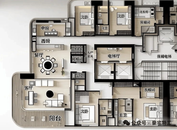 5梯2户:近乎私梯的配置(平均2.5梯服务1户),出行便捷无忧。适合追求极致空间体验与顶级服务的家族或精英领袖。