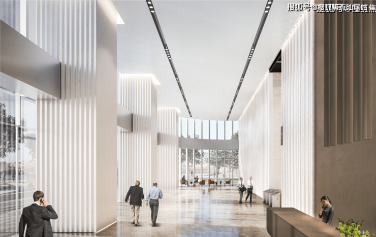 约11米层高,融合“光辉未来”设计理念,以充满能量的线性符号和天花模块群设计,打造核心大堂气派形象。