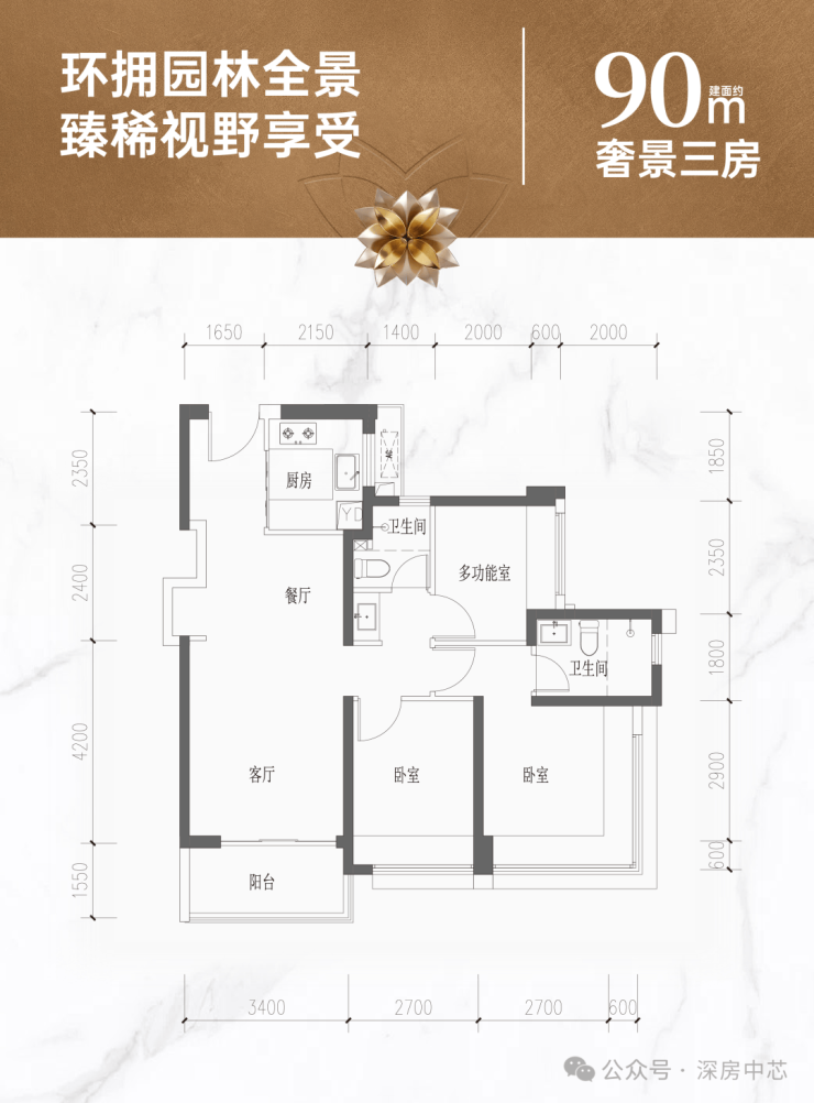 约90㎡ 三房两卫 | 明星畅销藏品,花园里的房子,看园林全景,对望泳池,遇水则发;90㎡能做到超百平米的空间享受,舒适度与性价比同享。