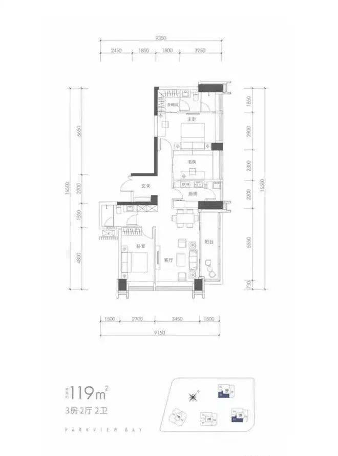 户型:分别是120平米3房2厅2卫,190平米4房2厅3卫