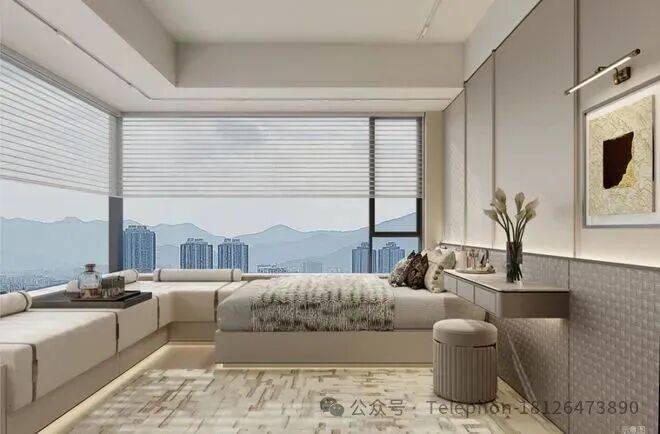 6栋约百米府邸依山势一字排开,户户朝南,超高窗墙比,邀天光入室。甄选隔音减噪、防水隔热性能的系统门窗与中空Low-E玻璃,贝金米黄石材基座与流线金属飘板,公建化美学立面。