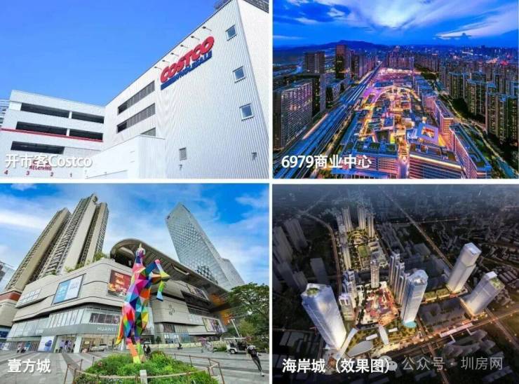 周边落地华南首家开市客Costco、6979商业中心、壹方天地、山姆会员店,以及天虹、港铁颂荟等,组成庞大多元商圈。