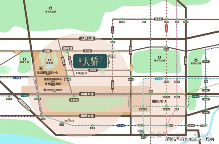 福田区中心公园,对标国际一线中心公园;揽一湖两山六园艺境,天然绿肺环绕,东赏莲花山、西揽香蜜湖、北望塘朗山、南拥狮岭山。