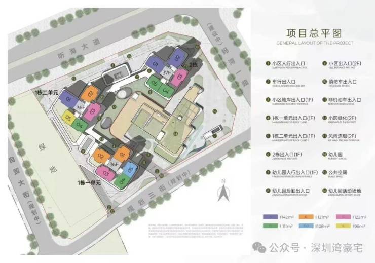 项目位于前海妈湾板块,西临妈湾二路,北临听海大道,东接前湾水廊道及河岸公园。项目占地约1.5万㎡,住宅建面约6.6万㎡,规划3栋住宅+1栋幼儿园,其中1栋一单元和1栋二单元为36层,2栋为37层,总户数共485户,4梯5户,车位595个,车位比1:1.22,容积率4.75。主推约96㎡稀缺三房、111㎡3+1房、122㎡四房、142㎡四房。户型设计了大客厅、宽景阳台、阔景飘窗等,拥有山海河多重景观资源,计划品质精装交付。户型采用建筑新规设计,户户大阳台,分布式电梯设计,独立电梯厅。