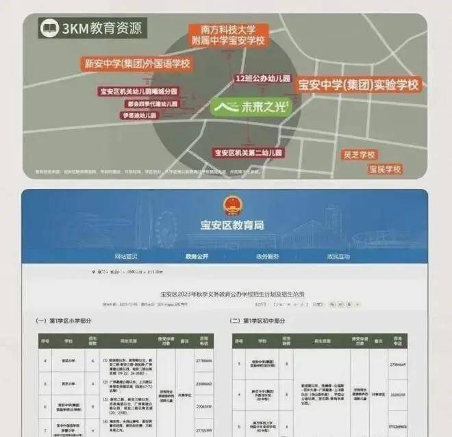 万科未来之光邻近宝安中学(集团) 实验学校,该校属于宝安区二梯队名校;同时距离约1.3公里(地图测距),还有万科自己代建,已开学2年的南方科技大学附属中学宝安学校,可以说名校资源丰富。