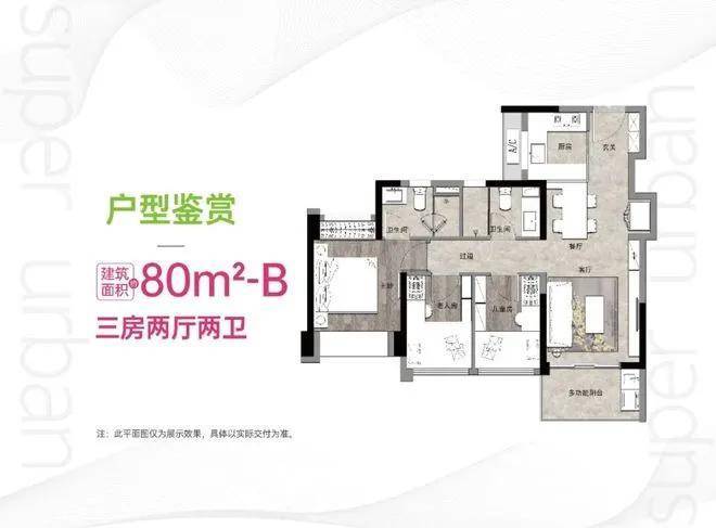 【户型面积】:建面约74-98㎡3房产品
