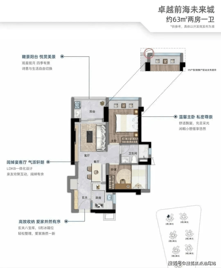 户型:建面约63㎡两房一卫/约76㎡三房一卫/约86㎡三房两卫/约112㎡四房两卫