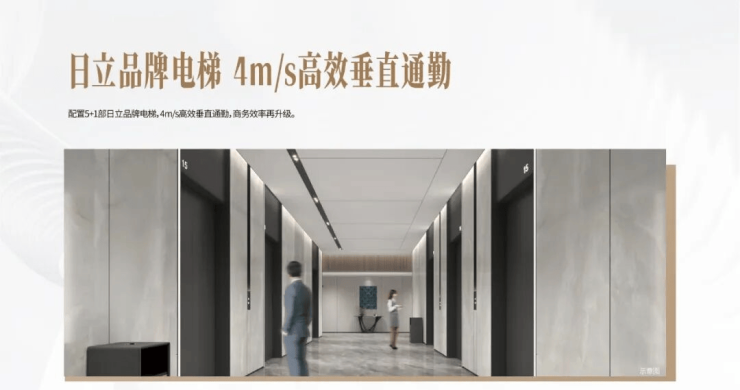 5+1台日立品牌电梯,4m/s高效垂直通勤!满足大规模人流同行,助力企业高效办公
