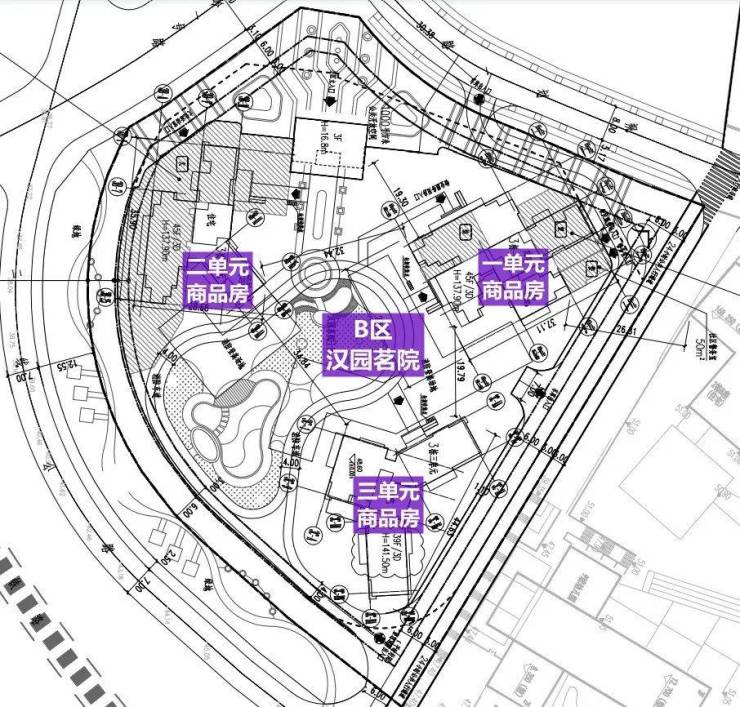 B区由3栋三个单元及裙房组成,其中一二单元层数45层,三单元层数39层,总户数474套,套内面积小于90㎡的有369套,占比77.85%,均为商品住宅。