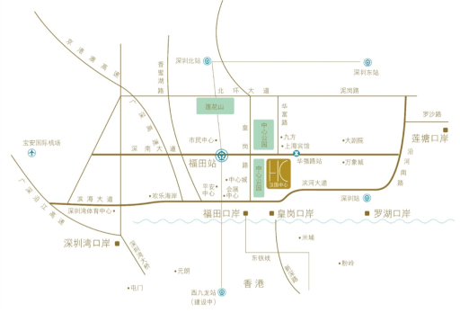 3、汉国中心屹立深南大道之上、拥享地铁1/2/3/7号线、高铁福田站、深南大道、滨河大道、组成的立体交通网络,毗邻福田皇岗双口岸、尽得深港双城的国际交通便捷、环球商机轻松掌握