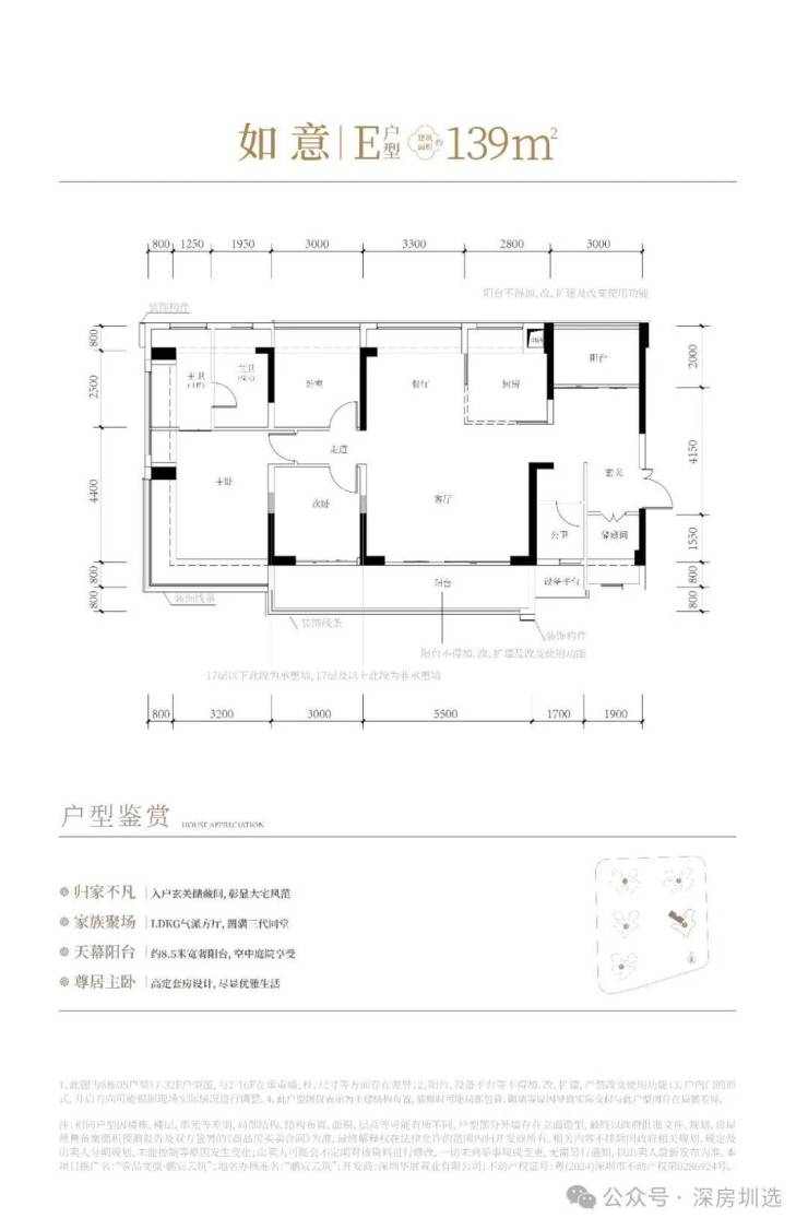 【好产品】全生命周期户型,新规产品高使用率深圳建筑新规首发项目之一,超高综合实用率创新型成长户型,适应家庭不同阶段的需求变化,拔墙设柱设计、分户S墙、创新LDKC内外亲子双区等