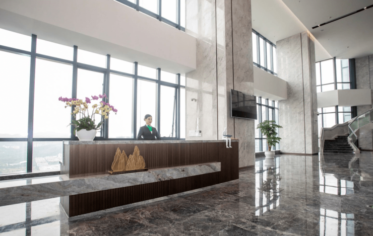 殿堂级10米挑高大堂、彰显国际企业恢弘形象、大空间铸就大格局、简约大气、树立企业恢弘门户形象