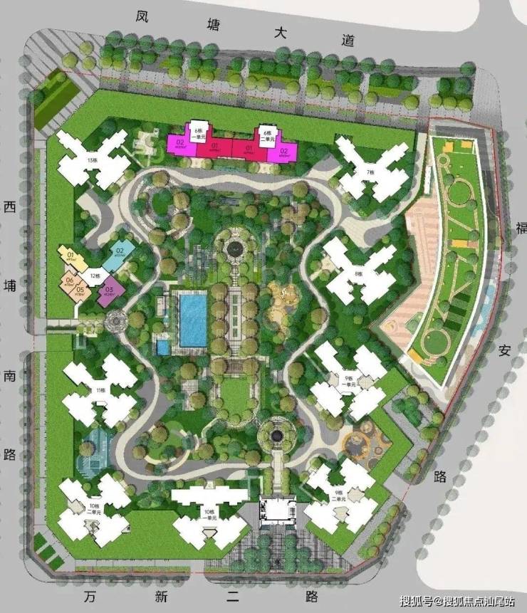 配备全龄子母双泳池、亲子乐园、交流花园,构建全龄活动功能配套,主出入口列阵式礼仪轴线,体现归家仪式感,品质尊崇感