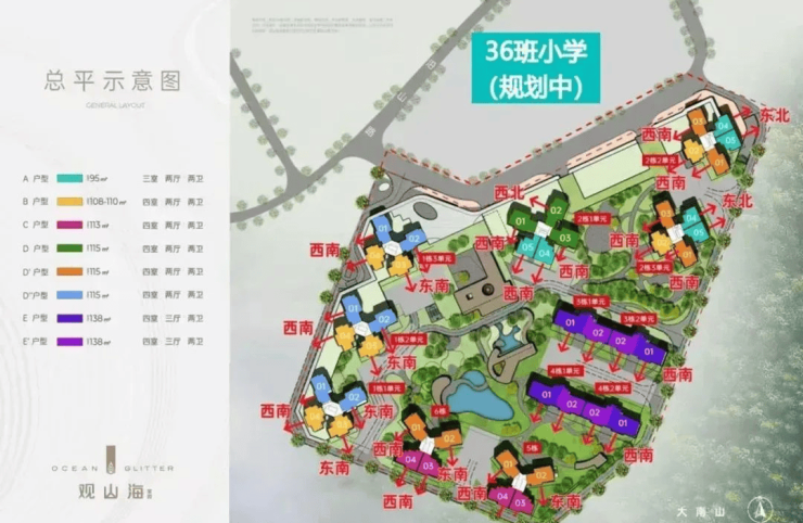 这个面积段主要分布在2-1栋/2-2栋/2-3栋的04、05户型,其中2-1栋的04、05户型是西南朝向看小区花园;另外两栋的04、05户型则是东北朝向看大南山。