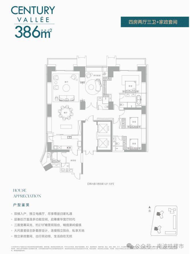 深业世纪山谷前两次都是公寓,现在住宅首发!还是定位相当高端的纯大平层,8梯3户,240㎡/280㎡配备两个独立电梯,380㎡双梯设计,实在任性!