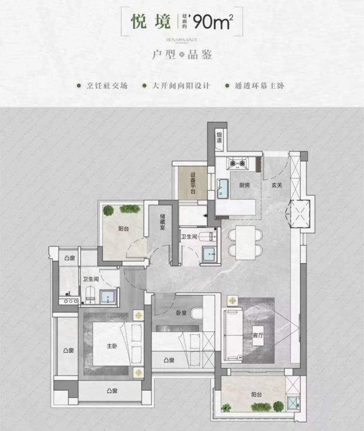 产品方面,打造约90-95-105-143㎡ 新规产品3-4房,使用率极高。