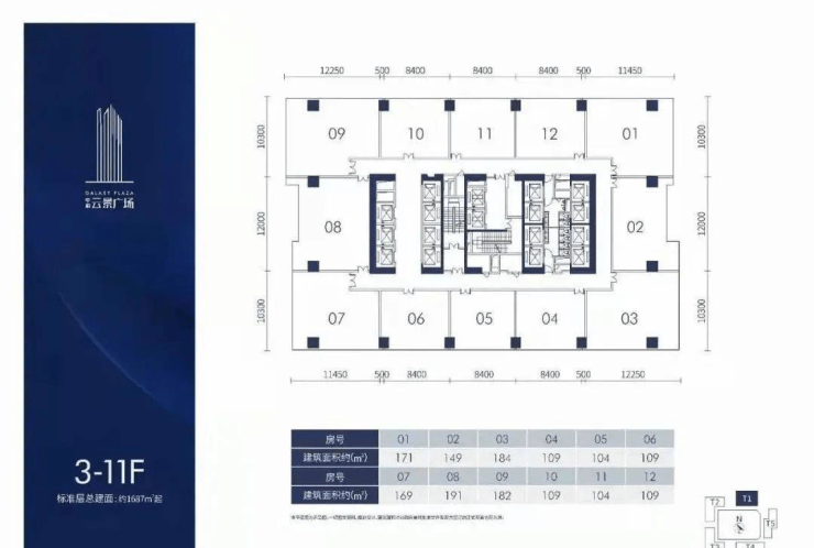 出售面积:103㎡起,整层1700㎡,12户/层