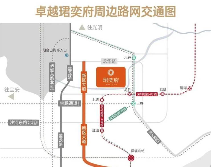 卓越珺奕府位置:坐落于深圳市龙华区布龙路与和平路交汇处,地处繁华的龙华商业中心超级商圈,拥有极佳的地理位置和巨大的发展潜力。项目距离地铁4号线龙胜站仅500米,毗邻6号线元芬站,交通便利。