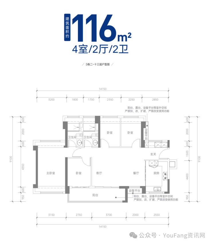 主力户型:建面约99-116㎡3-4房