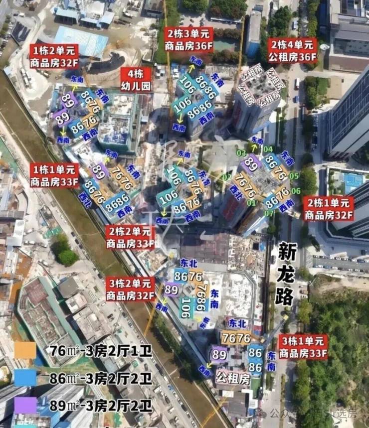 项目由天健集团+深福保+深高新集团3家国企联合打造,总占地面积约3.6万㎡,总建筑面积约22.49万㎡,计容建筑面积约16.46万㎡,容积率4.75,绿化率30%,共由8栋32-36层高住宅组成,分3个地块开发,不过花园都是共享连通在一起的,其中1栋1单元/2栋2单元/3栋1单元住宅33F,1栋2单元/2栋1单元/3栋2单元住宅32F,2栋3单元/2栋4单元住宅36层,4栋是1所9班制幼儿园。