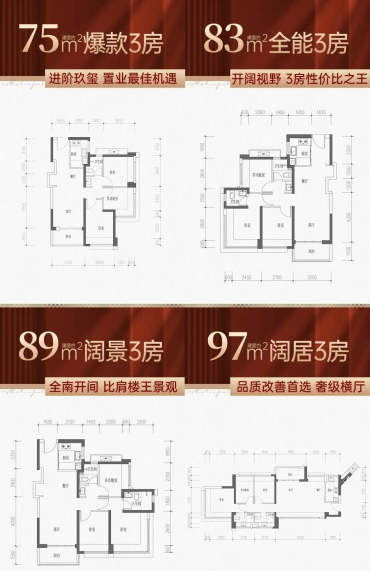约75-97㎡全能3房/约110-199㎡臻奢4房,进阶鸿荣源高端玖系圈层绝佳机会‼‼