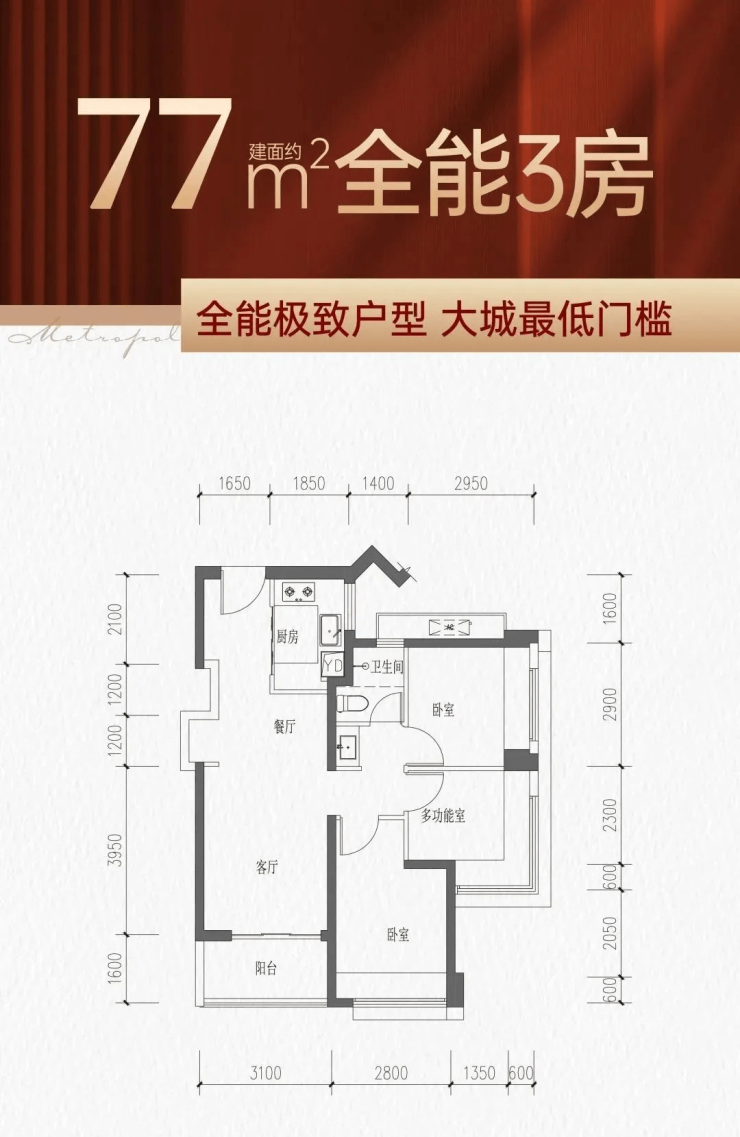 建面约77㎡-93㎡全能三房【新品户型鉴赏】