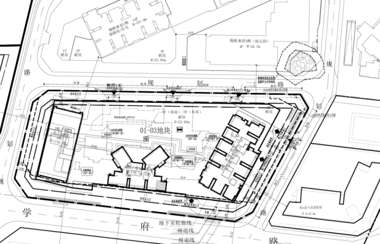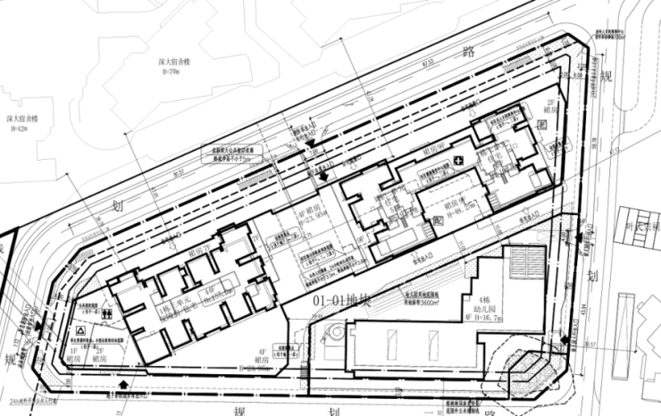 01地块:规划3栋44层、55层、55层超高层住宅(1栋一、二、三单元),以及1栋幼儿园(4栋)。