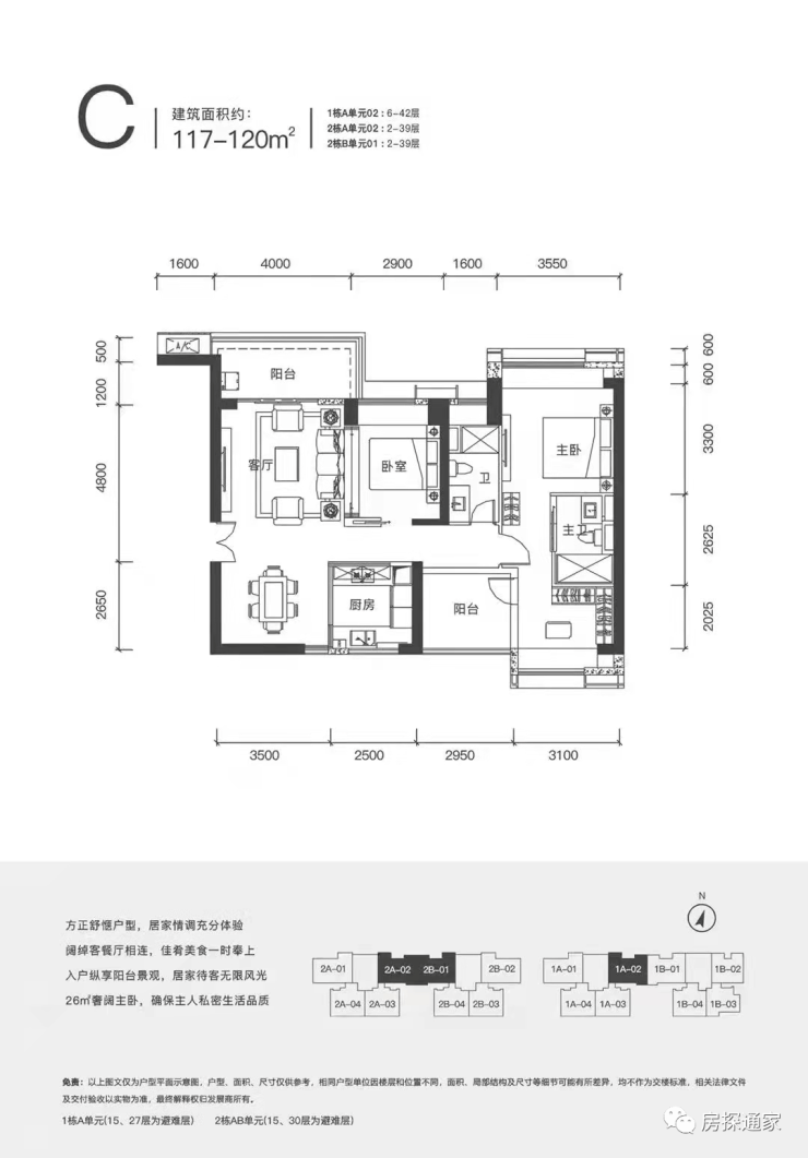 【产品面积段】112-115平3房2卫 、239平4+1房3卫