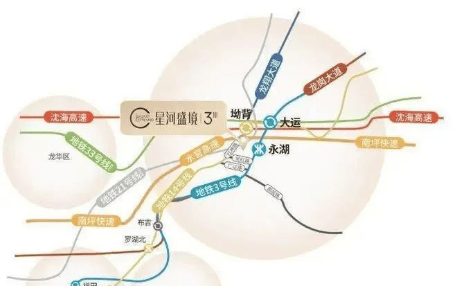 星河·盛境三期傲踞深圳龙岗横岗核心地段,坐拥无可比拟的地理优势。轻松步行即达地铁3号线永湖站(约600米)与即将通车的14号线坳背站(约1.1公里),构建高效出行网络。更瞩目的是,项目前瞻未来交通规划,紧邻规划中的地铁21号线与33号线交汇点,未来出行将无缝连接深圳各大区域,尽享便捷生活圈。