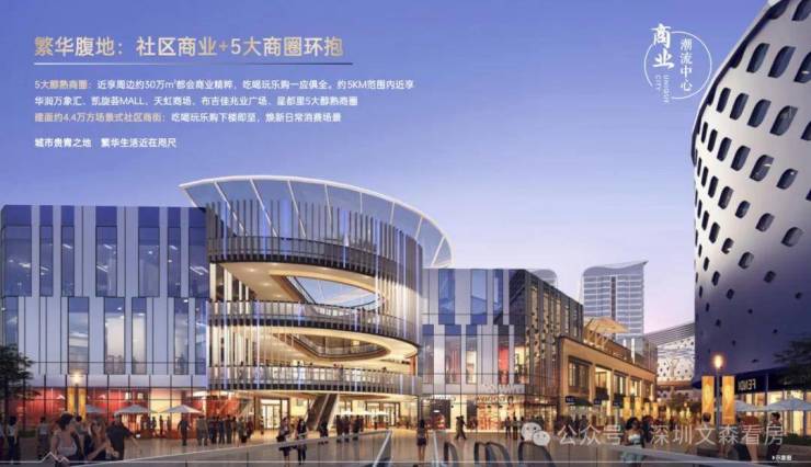 项目自建约4.4万平场景式社区商街,周边约5km范围内近享华润万象汇、凯旋荟MALL 、天虹商场、佳兆业广场、星都里等。