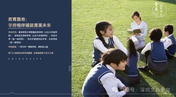 招商臻城自带幼儿园,附近有吉华实验学校(9年制)、南京师范大学附属龙岗学校(9年制)等一站式精英教育。