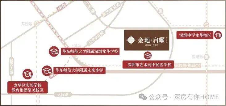 交通配套:金地启曜府拥有"六线七站"的立体交通网络,是深圳交通配套最为完善的区域之一。已开通的4号线龙华站距离项目约1公里,步行10分钟可达,4站直达深圳北站,换乘高铁30分钟可达广州南站;6号线上芬站距离约1.5公里,可快速接驳光明科学城及福田中心区。