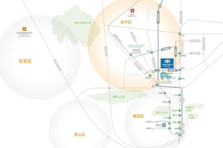 占据湾区中轴脊梁,立足数字龙华门户区位,北接国家战略科创中心,南承深港科创合作区,串联南北产业带,链接城市产业升级。