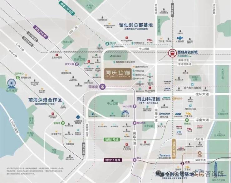 看下图,同乐片区东面是南山科技园,西面是前海,南面是后海、深圳湾,北面是西丽留仙洞。