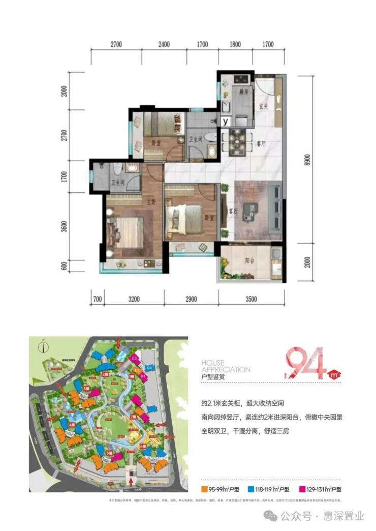 主力面积:94--119-129-131㎡3-4房
