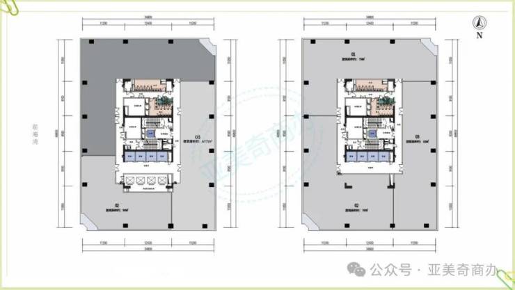 公共功能区域:每层预留2个卫生间、1个茶水间及1个清洁间