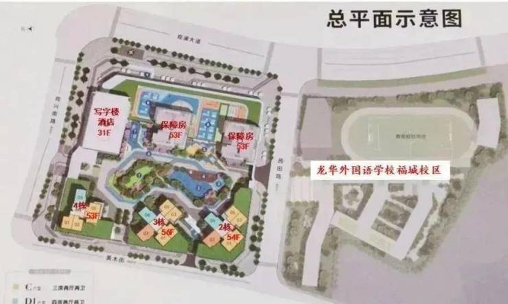龙华外国语学校福城校区(在建中),龙华区属首个外国语教育集团,本部校区2020年第一批中考总均分、400分以上比例均位居龙华第一;