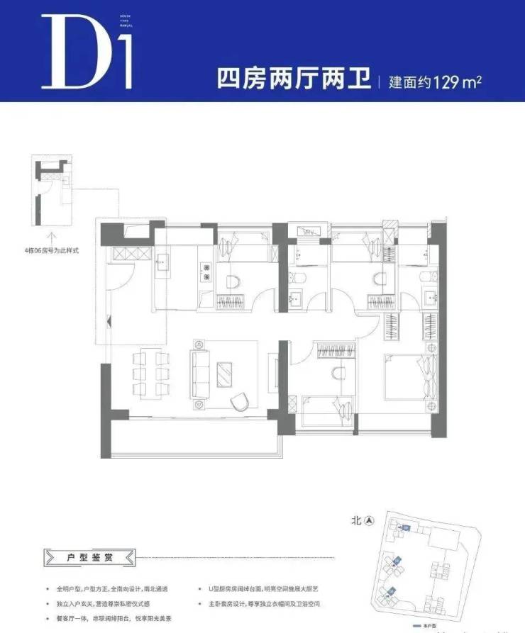 可售户型:103㎡三房两厅两卫、129㎡四房两厅两卫