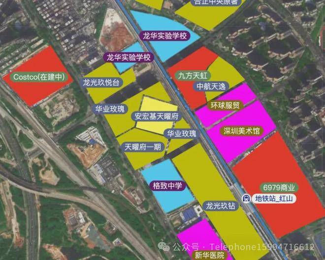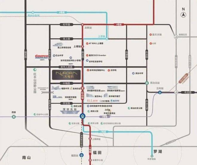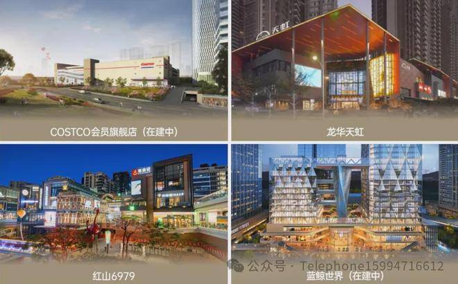 商业配套:项目自带约1.27万㎡商业,周边社区也自带部分底商。北侧为天虹购物中心,更远一点有红山6979、AT MALL上塘荟、Costco华南会员旗舰店(龙华民治店)等。片区超200万方商业体量,超越福田CBD商业集群,生活购物十分方便。