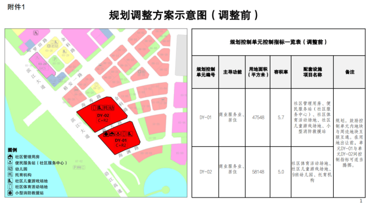 DY01-01地块(南街坊)用地面积42523㎡,用地性质为二类居住用地,容积率为3.4;DY01-02地块用地面积5025㎡,用地性质为酒店用地,容积率为6.0。
