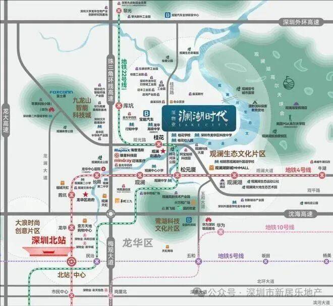深物业澜湖时代,由深物业集团开发,项目总占地面积约6.8万㎡,总建筑面积约62万㎡,计容建筑面积约43万㎡,共分3个地块开发,总规划约2700户,将建成集产业生产研发、住宅、商业街区于一体的产城综合体,是龙华北片区新的大型标杆项目。