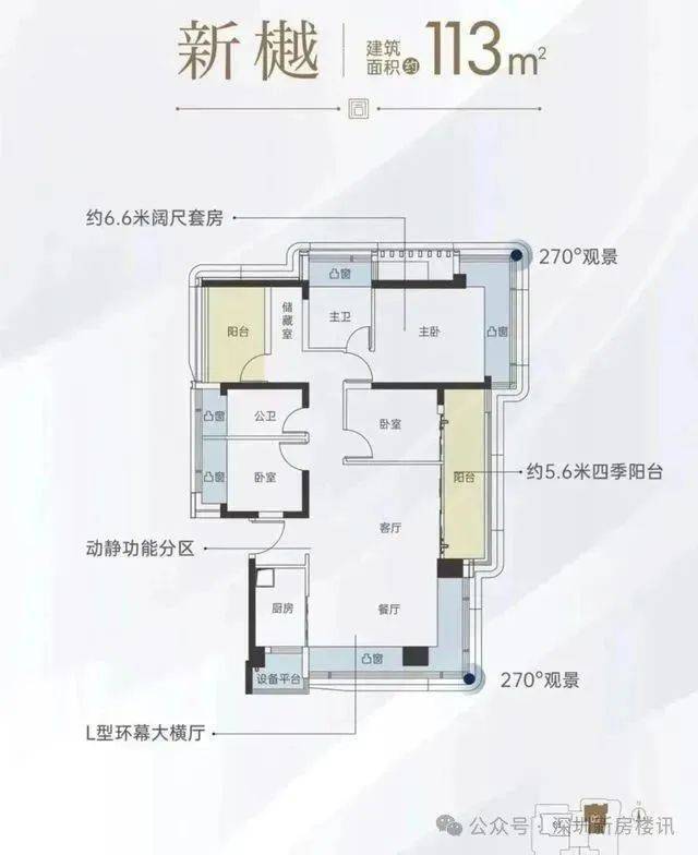 『坐北朝南』:户户坐北朝南,高层观揽前后海城市天际线;三面采光,270°环幕主卧,朝伴晨光而醒,暮揽夕霞入画。