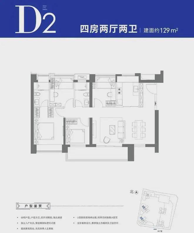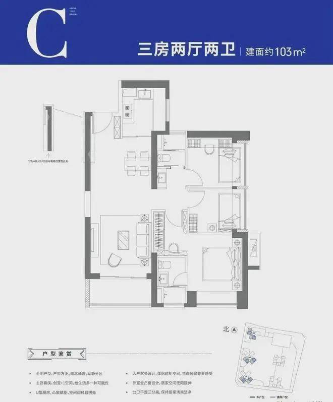 可售户型:103㎡三房两厅两卫、129㎡四房两厅两卫